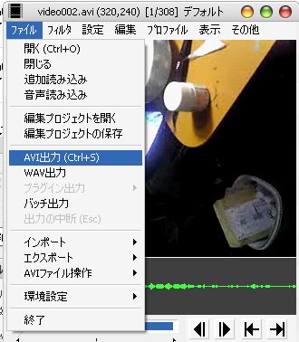 最後に「ファイル」メニューからAVI出力で任意の圧縮CODECで保存させれば完成です。